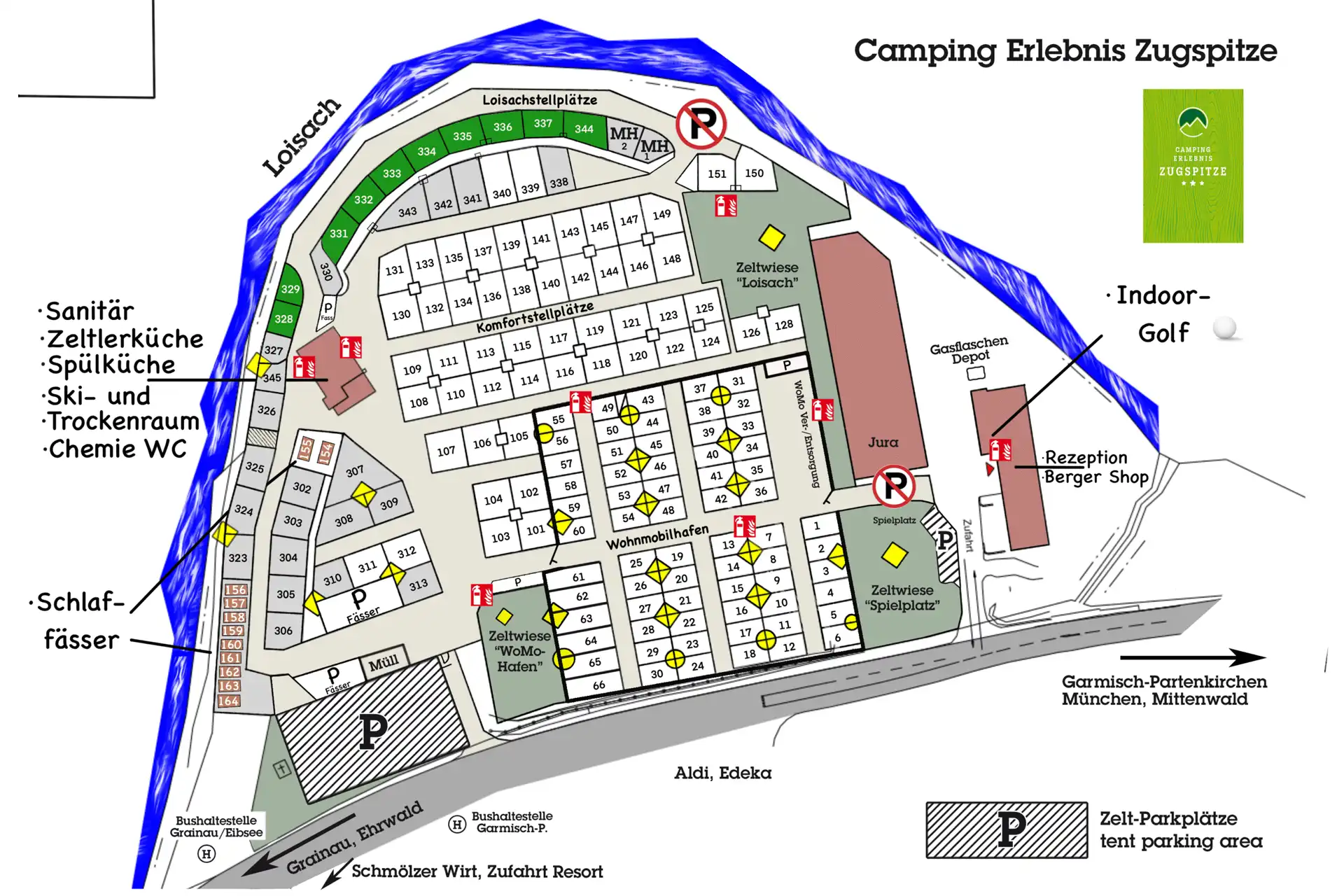 You can find your perfect campsite in Grainau at the foot of the Zugspitze on our site map.